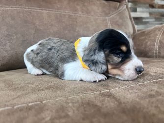 Our puppies include piebald, black and tan, fawn (isabella) and tan, chocolate and tan, and dapple. Colors will vary depending on the parent dogs.