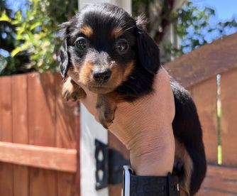 Mookie-AKC is a female Dachshund about 3 years old. Carefully selected as a great representative of her breed, April decided to make her part of their program. April has passed Good Dog’s screening process, which involved a review of their breeding practices, environment, and the mental and physical health of their dogs.