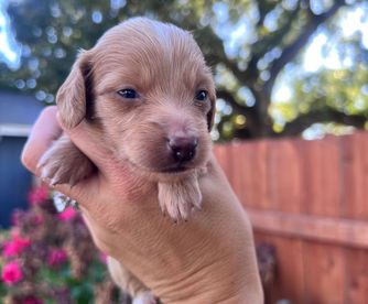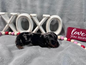 Cookie-CKC is a female Dachshund over 3 years old. Carefully selected as a great representative of her breed, April decided to make her part of their program. April has passed Good Dog’s screening process, which involved a review of their breeding practices, environment, and the mental and physical health of their dogs.