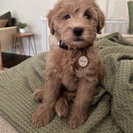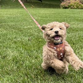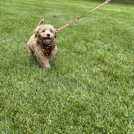 I would recommend Kathryn and her program to anyone looking for a mini goldendoodle! Reese (aka Clover) has been the perfect addition to our family for a month now and I have only positive things to say about my experience. Kathryn went the extra mile to answer any questions I had and was always quick to respond. She is very knowledgeable, and you can truly see the amount of love they pour into their pups through their in-home program. Their program sets the pups and families up for success once they come home. Reese has done excellent in every environment he has been in so far- car rides, vet visits, being around his kitty siblings, meeting new people, etc.- he does so good! He took to potty training so quickly, learns commands quickly, and he is the perfect mix of playful and cuddly. It amazes me every day how smart, silly, and loving my little guy is! I would choose Kathryn/Circle City in a heartbeat if I did it again! Thank you so much Kathryn for my happy and healthy pup!