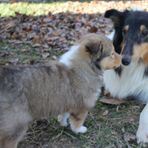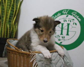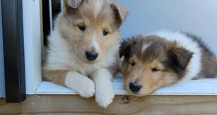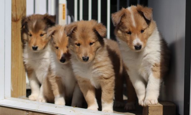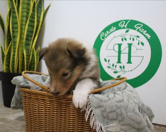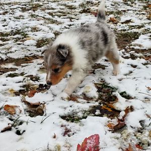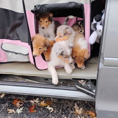 Our puppies include sable merle, sable, black white and tan, and blue merle. Colors will vary depending on the parent dogs.