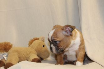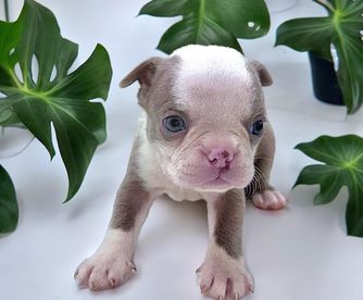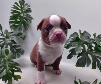 Franklin is a male Boston Terrier. Carefully selected as a great representative of his breed, Emily decided to make him part of their program. Emily has passed Good Dog’s screening process, which involved a review of their breeding practices, environment, and the mental and physical health of their dogs.