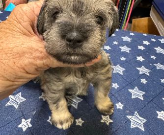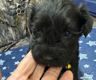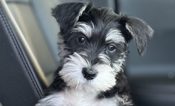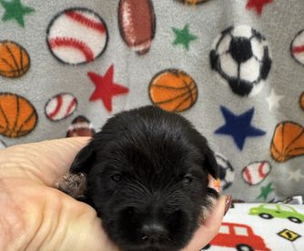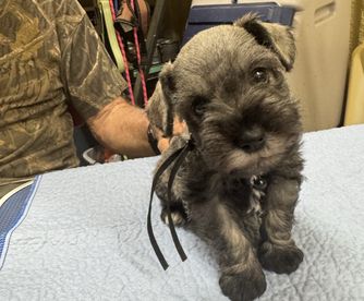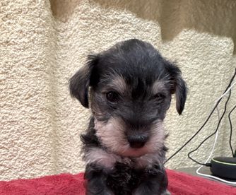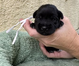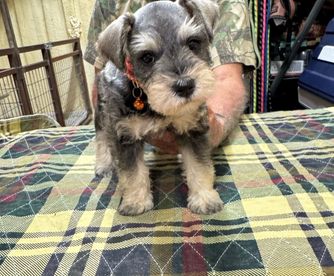Our Border Collie puppies include black and white and red. Miniature Schnauzer puppies include wheaten, white, parti, liver, salt and pepper, black and silver, and black. Colors will vary depending on the parent dogs.