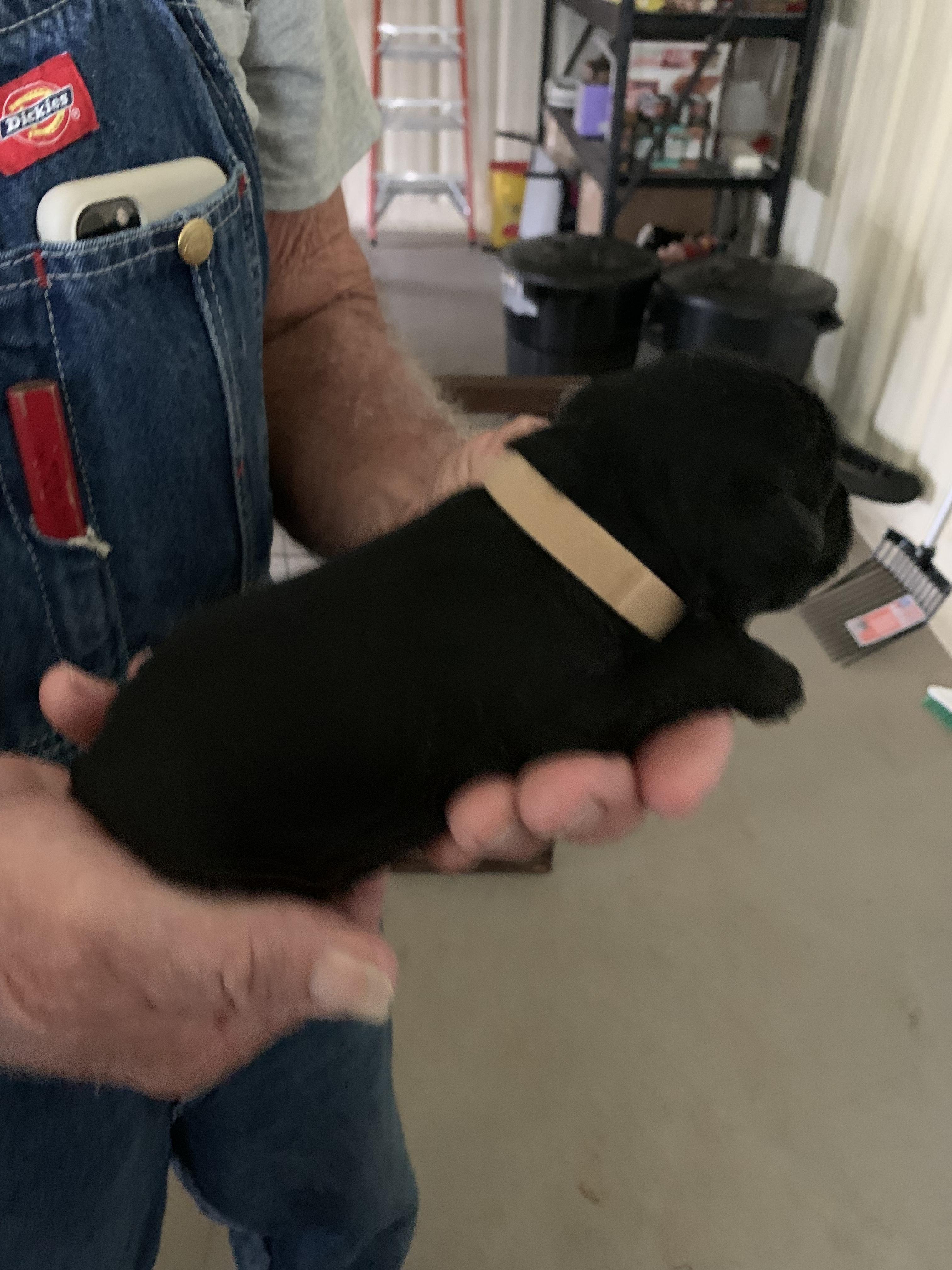 “👉 500 dollar non refundable deposit is paid after a pup is picked. I It will reserve you a puppy from the litter. $1000 due at pickup time at 8 weeks old. 500 deposit after pup is picked. Remainder 750 at pick up. First come, first serve. The exception a bad report from vet before pick up. breeding are $800 dollars extra.”