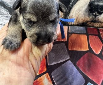We decided to purchase a male mIniature schnauzer from Billy and Sandy from Circle R after lookIng at numerous puppies over the past year. After committing to purchase we received regular communication, pictures and videos. This allowed us to bond with our puppy over the next month as we awaited his arrival. The day finally came and we were met halfway. Our little pup is from good stock: he is very handsome, inquisitive and confident. We're very grateful that we were able to have such a good experience with this couple and thru Gooddog.