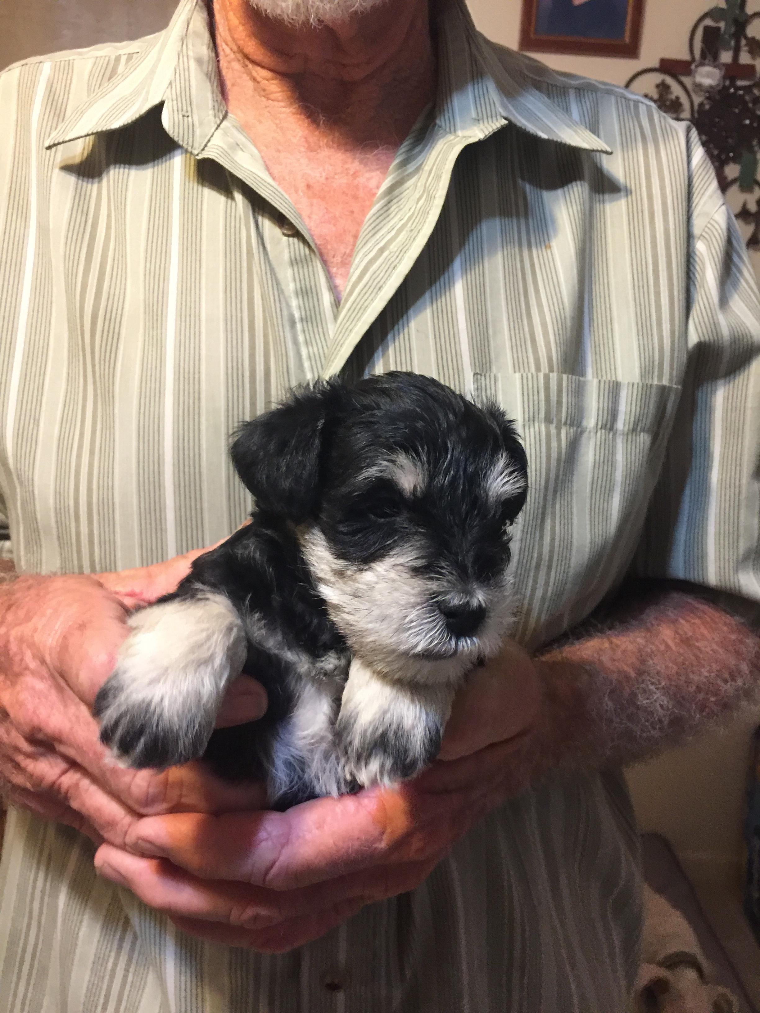 Billy and Sandy were remarkable. These in his regular updates about our precious schnauzer puppy. You could tell he was very well loved and cared for when he came home and was instantaneously in love with my children. He was also potty trained, which was extremely helpful. He is the most warm and loving little dog. We are so grateful to be in Sandi and hope they continue their excellent breeding of miniature schnauzers.