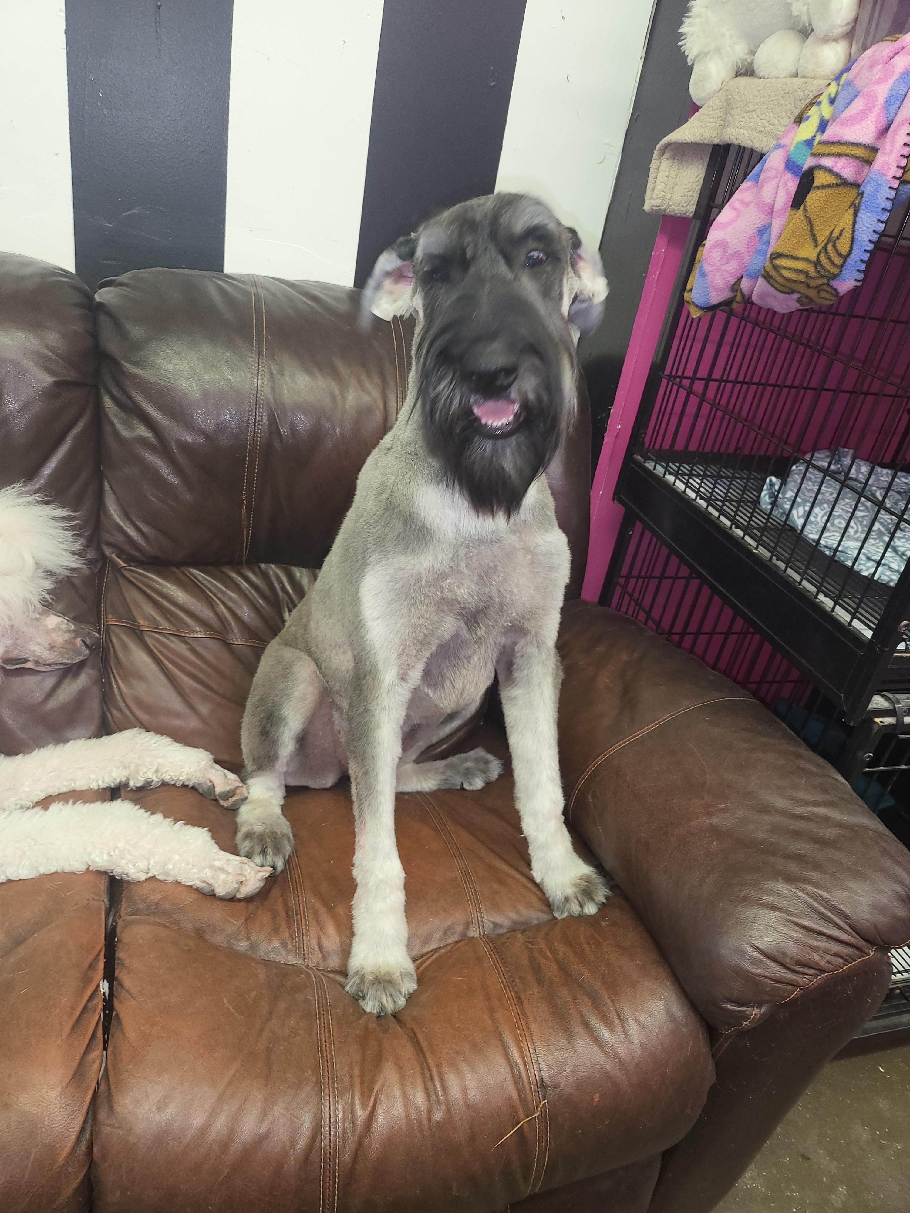 JewJew is a female Standard Schnauzer. Carefully selected as a great representative of her breed, Melissa decided to make her part of their program. Melissa has passed Good Dog’s screening process, which involved a review of their breeding practices, environment, and the mental and physical health of their dogs.