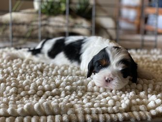 Our puppies include blenheim and tri-color. Colors will vary depending on the parent dogs.