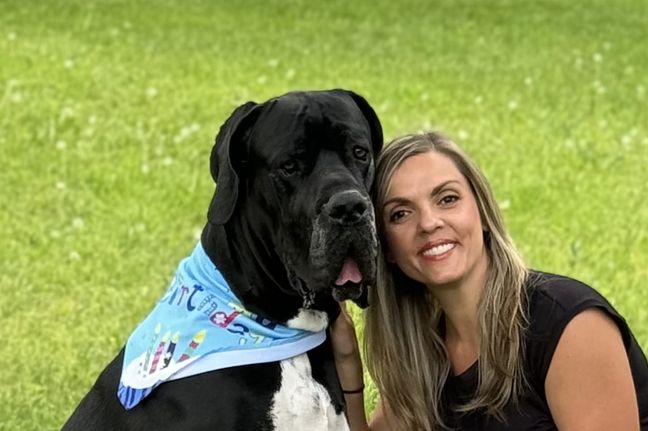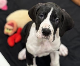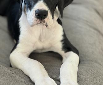 Mateo is a male Great Dane. Carefully selected as a great representative of his breed, Heather decided to make him part of their program. Heather has passed Good Dog’s screening process, which involved a review of their breeding practices, environment, and the mental and physical health of their dogs.