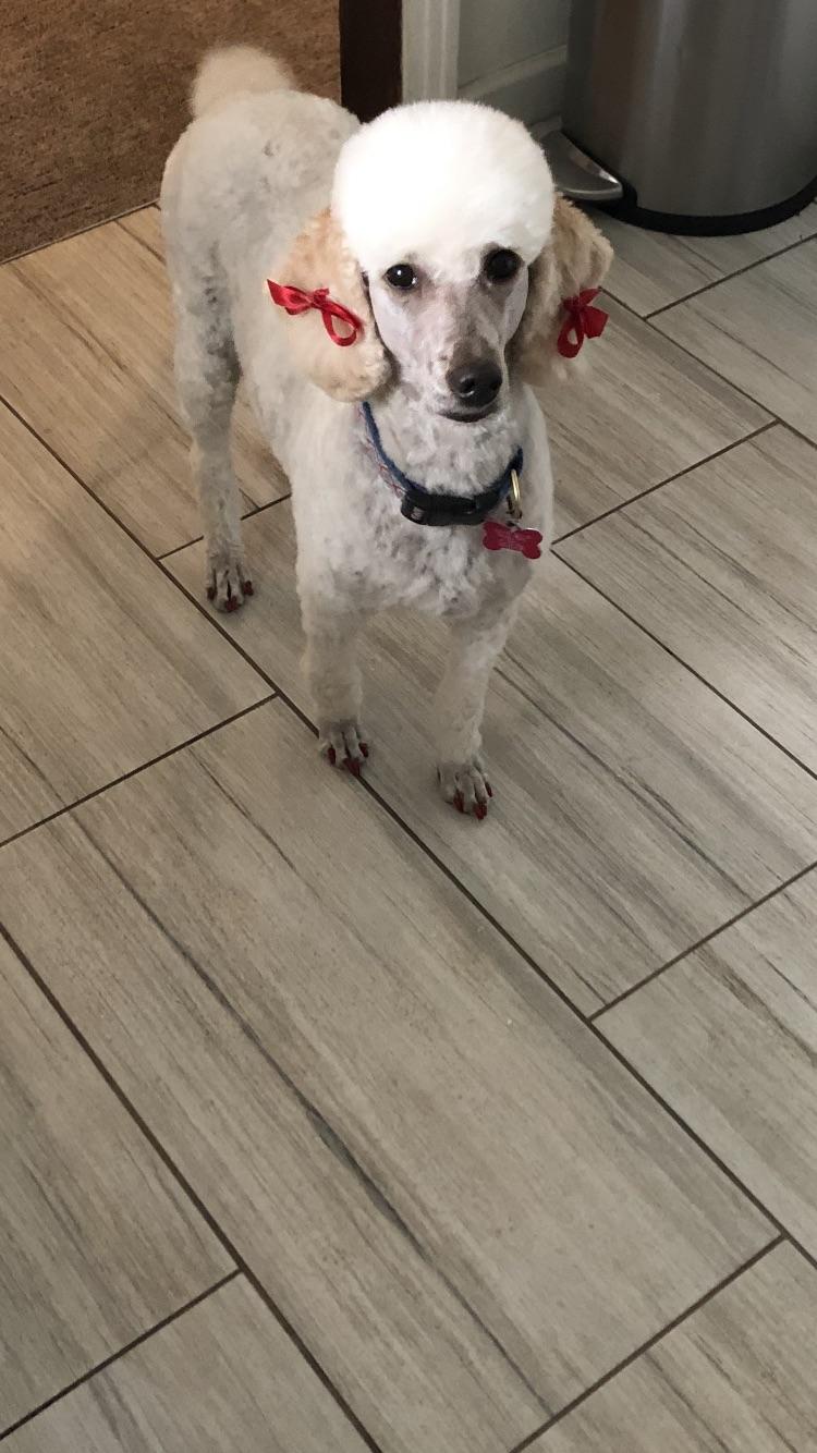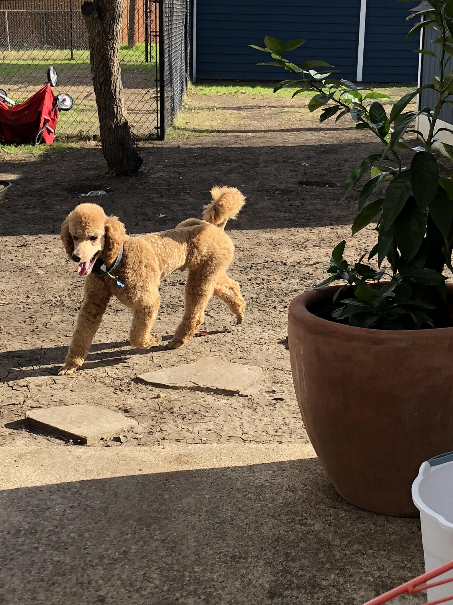 Nola is a female Poodle. Carefully selected as a great representative of her breed, April decided to make her part of their program. April has passed Good Dog’s screening process, which involved a review of their breeding practices, environment, and the mental and physical health of their dogs.