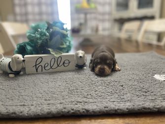 C & J Doxies was amazing to work with. They were clear and responsive with questions and expectations. I was sent picture updates every week leading up to pick up! Would highly recommend. I love my little mini dachshund!