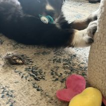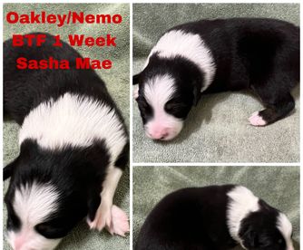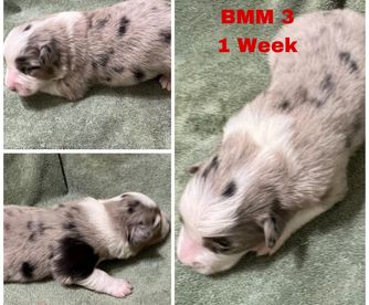 Piper is a minimal white blue merle. She is AKC and has a clear genetic panel. She is super sweet and is always “smiling”.