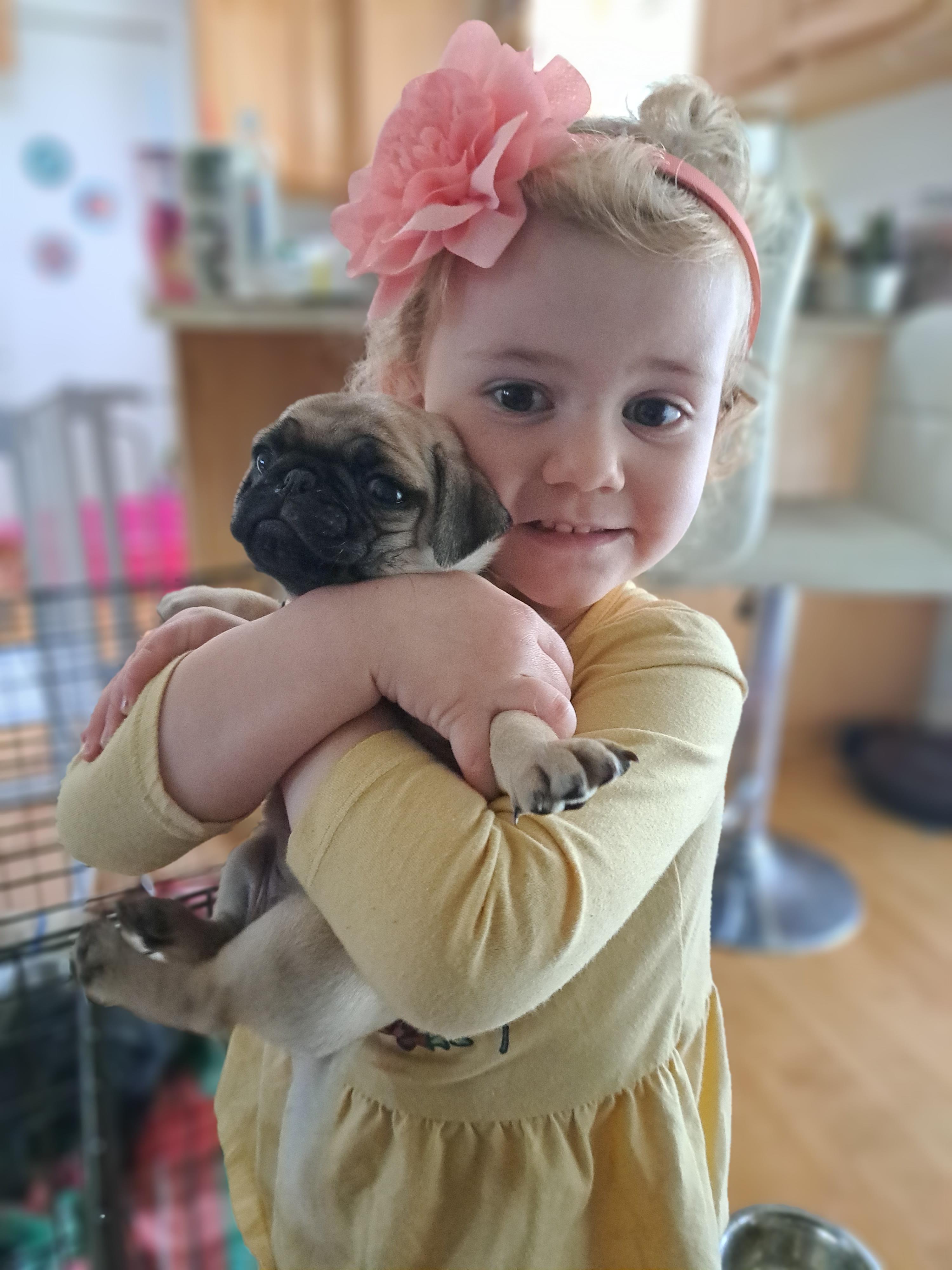 I started with two older rescue pugs, both of whom had health issues and had come from puppy mills. They brought us tremendous joy, but also heartache. I fell helplessly in love with the breed and made it my mission to raise the standards for healthy pug babies, brought up in a safe and ethical home environment.
