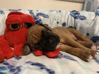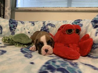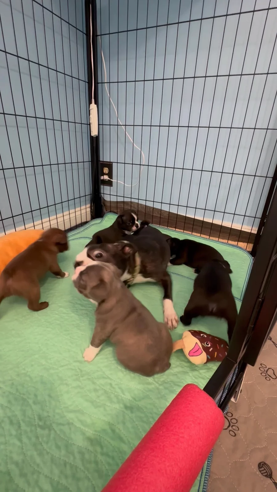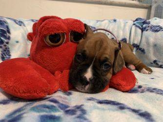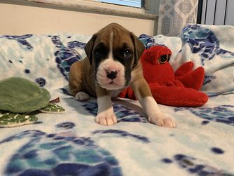 Our Boston Terrier puppies include red, lilac, blue, brindle and white, seal brindle and white, seal and white, black brindle and white, and black and white. Boxer puppies include fawn, brindle, and white. Colors will vary depending on the parent dogs.