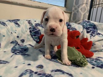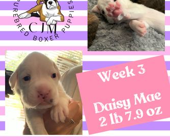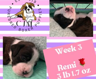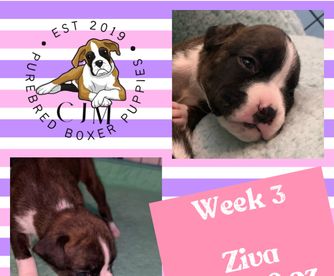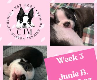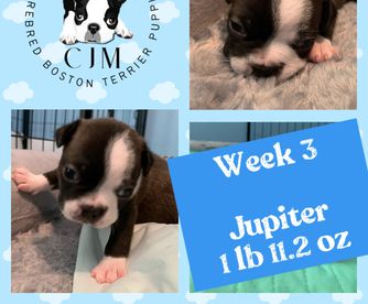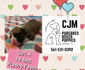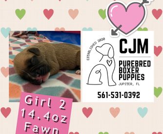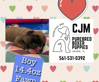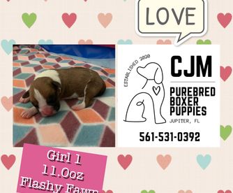 I'm Michelle G., the breeder behind CJM Boston and Boxer Puppies located in Jupiter, FL. We are dedicated to always providing our new puppy parents and our puppies with a positive experience, which includes remaining committed to responsible practices when it comes to breeding, training, and rehoming our puppies. Our puppies are all raised indoors and socialized with other dogs, people, noises, and we begin working to potty and crate train during the first 8 weeks. We vaccinate (first vaccination) and deworm (4 doses) prior to leaving our home. All puppies are sold under AKC and CKC limited (pet) registration unless prior discussion occurs. We highly recommend keeping puppies on heartworm prevention throughout the life of the puppy. Basic obedience and crate training are highly recommended as well! We do take the placement of our puppies very seriously so we appreciate the most detailed responses as possible! We want the match to be as perfect as possible for our puppy. Please know that we are also available for questions or concerns throughout the entire life of the puppy! Our litters currently range between $1800-2500 limited registration. Breeding rights are occasionally opened if the puppy is worthy of being a breeding dog (ie. Sound conformation, temperament and health testings, etc.).
