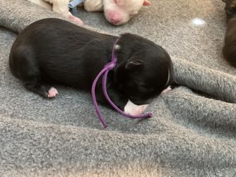 Our puppies are black tri-color. Colors will vary depending on the parent dogs.