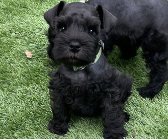 Our puppies include salt and pepper, black and silver, and black. Colors will vary depending on the parent dogs.