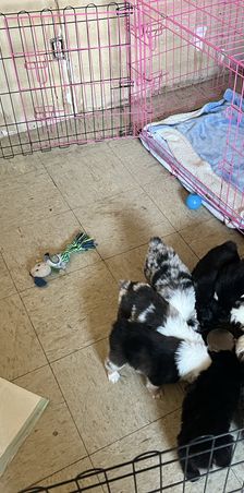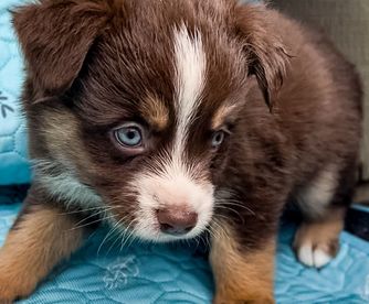 Our Miniature Australian Shepherd puppies include blue merle, black tri, red tri, and red merle. Colors will vary depending on the parent dogs.