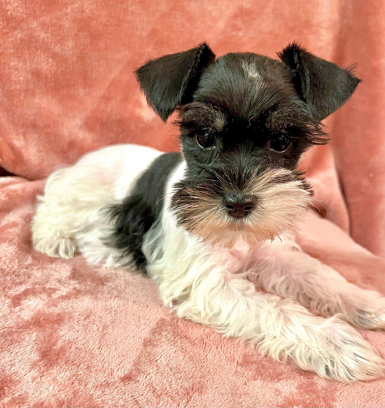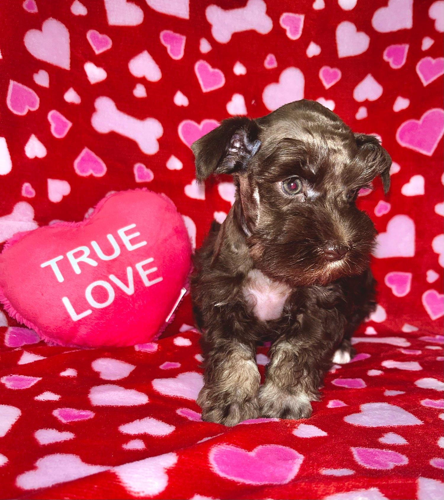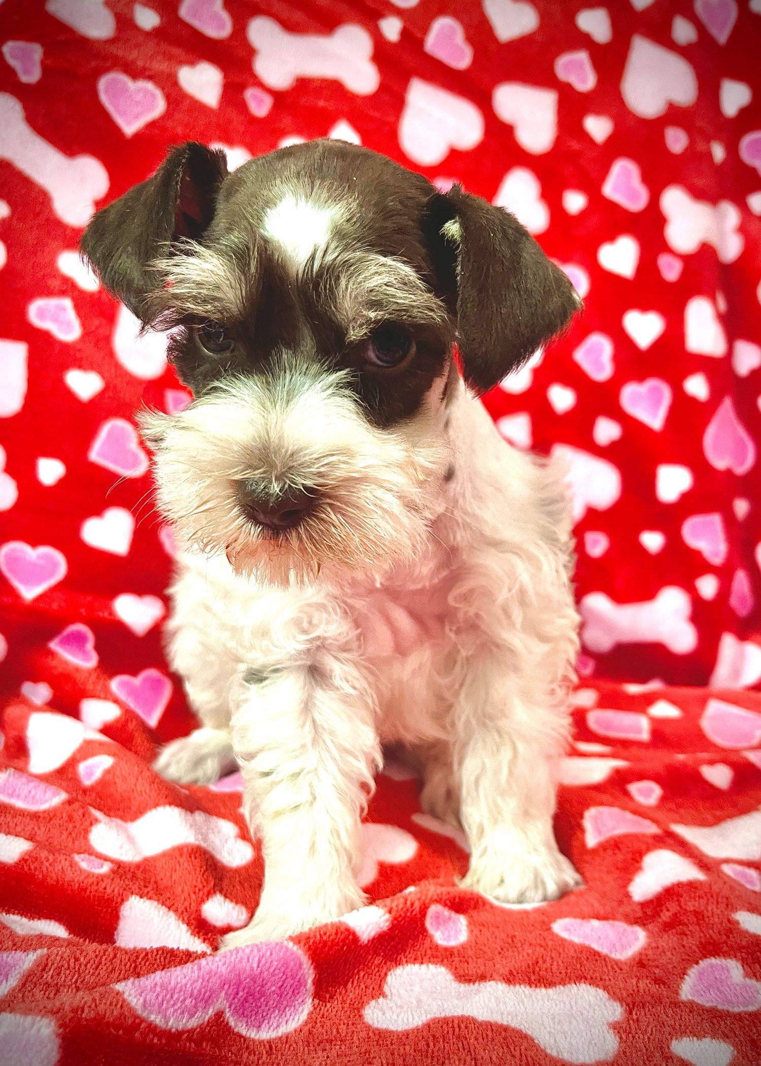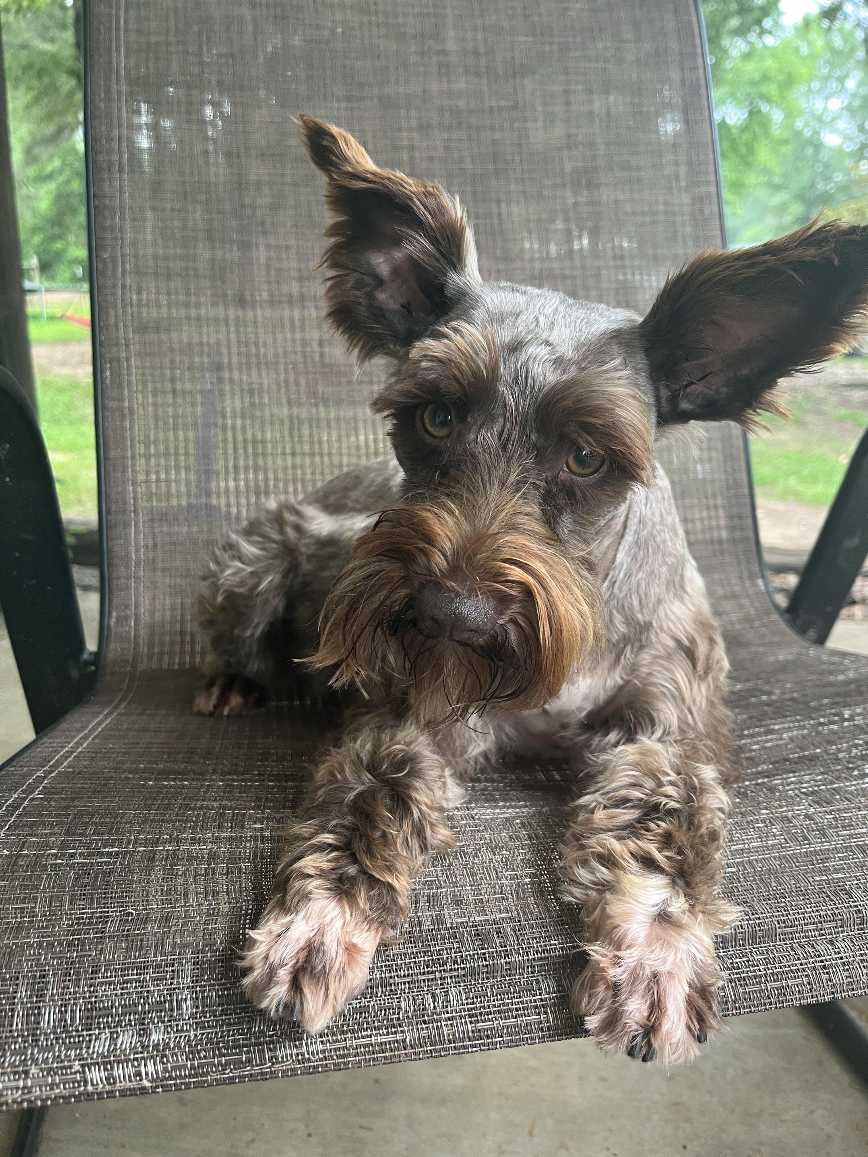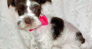 I was specifically looking for a small girl to complete our schnauzer family. Kaitlyn’s puppies seemed to fit what I was looking for. I picked up Lacey this weekend and Wow what a tiny smart girl. She is pellet box trained. I immediately set up, at Kaitlyn’s suggestion, and this baby girl is basically potty trained. She knows where her potty box is and will go there to PP and Poop! She is eating well and such a big girl in a tiny body. Kaitlyn was very responsive to my requests and keeping me updated on her progress along the way. I could not be happier and blessed with this sweet girl.