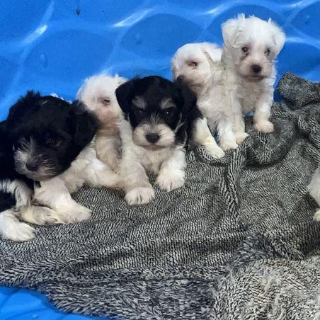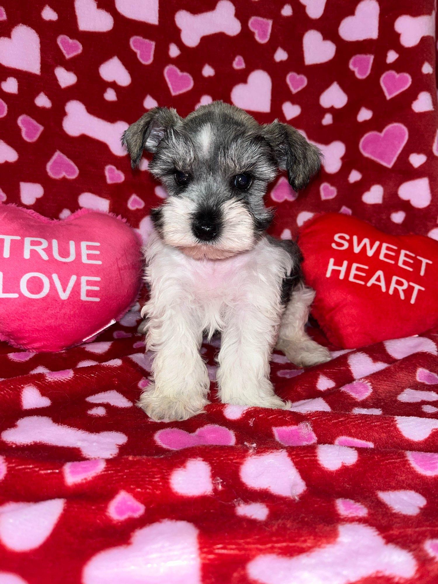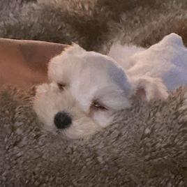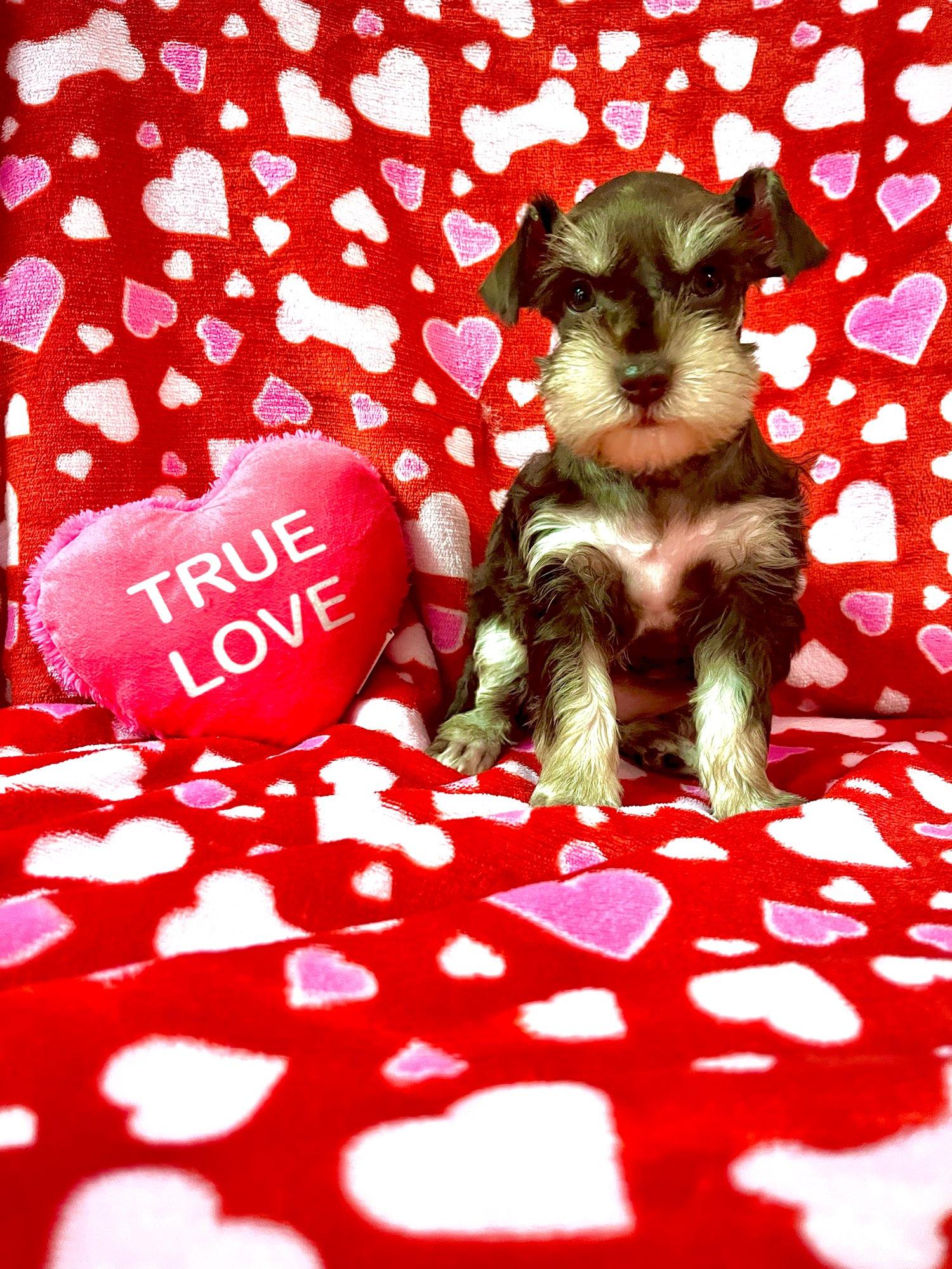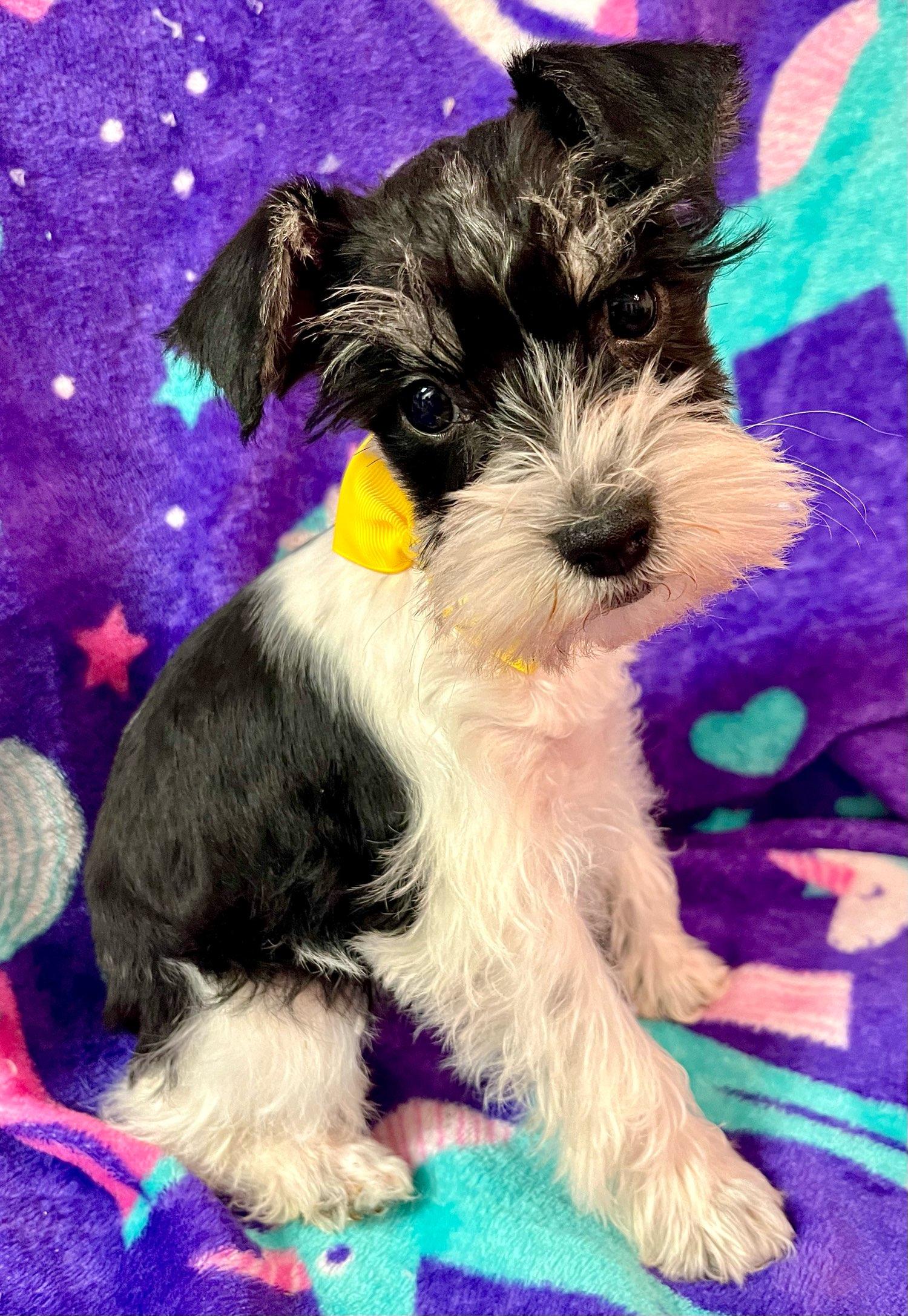 I was specifically looking for a small girl to complete our schnauzer family. Kaitlyn’s puppies seemed to fit what I was looking for. I picked up Lacey this weekend and Wow what a tiny smart girl. She is pellet box trained. I immediately set up, at Kaitlyn’s suggestion, and this baby girl is basically potty trained. She knows where her potty box is and will go there to PP and Poop! She is eating well and such a big girl in a tiny body. Kaitlyn was very responsive to my requests and keeping me updated on her progress along the way. I could not be happier and blessed with this sweet girl.