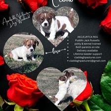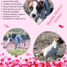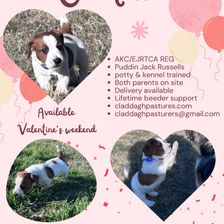 “Price is for AKC and EJRTCA limited registration Puddin' Jack Russell Puppy. 1yr guarantee on genetic disease, Lifetime Breeder Support, 1st Vaccines, Puppy Culture, Crate Training, microchipping. Deposit in non-refundable and holds pup of your choice. Once received you will get updates on your puppy.”