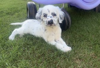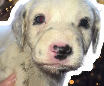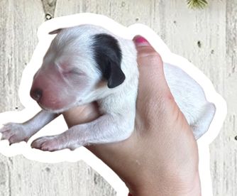 Our puppies include white and liver brown and white and black. Colors will vary depending on the parent dogs.