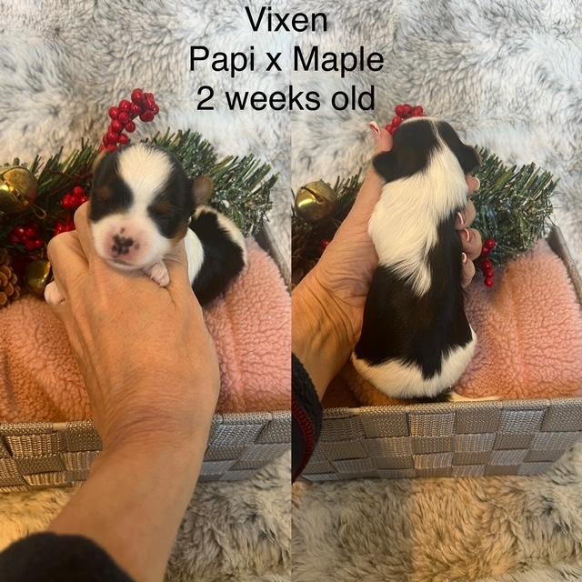 Maple is a certified therapy dog. She also does AKC Fast Cat. She loves people and is very outgoing. She is a great traveler and eater.