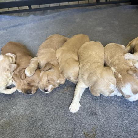 Our Goldendoodle puppies include miniature and medium sizes. Aussiedoodle puppies include toy and mini sizes. Sizes will vary depending on the parent dogs.