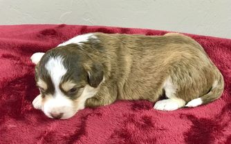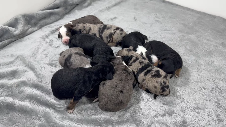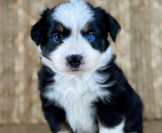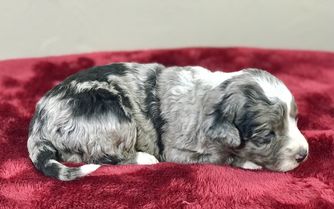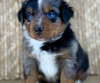 Our Miniature Australian Shepherd puppies include red & white, black & white, blue merle, black tri, red tri, and red merle. Aussiedoodle puppies include brown and white, blue merle, red merle, black phantom, black and white, black tri-color, red phantom, and red tri-color. Colors will vary depending on the parent dogs.