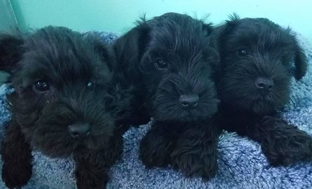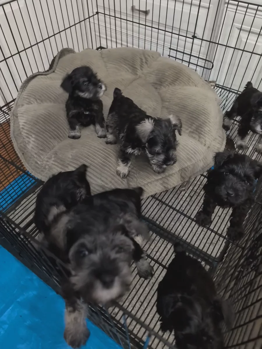 Our puppies include salt and pepper, black and silver, and black. Colors will vary depending on the parent dogs.