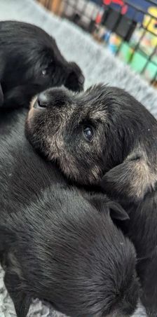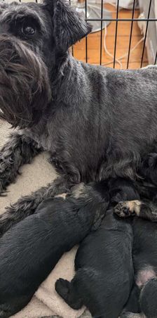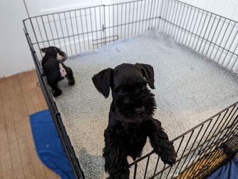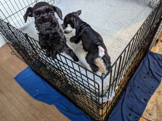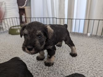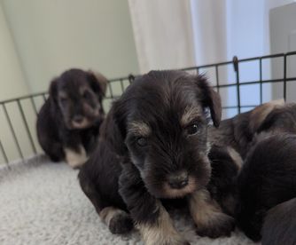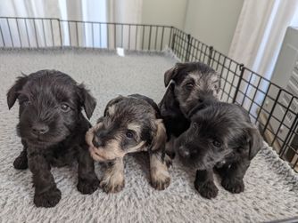 Litter born June 10th. Ready to go August 5th. Still have three puppies available. One salt and pepper male one salt and pepper female one solid black male