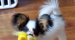 Thank you Good Dog for introducing me to Elyse. She is an outstanding conscientious breeder. After speaking with her and inviting me to pick up my puppy so I could meet the parents, I knew I was in good hands. The day I picked up my puppy I knew I made the right choice. My puppy is beautiful! Elyse gave me great information and tips about the breed. All of her papillon's were drop dead gorgeous. Now that I have had my little Bandit for several days, I couldn't be happier!!! A perfect fit! The purchase process was so simple. Thank you Elyse for providing me the opportunity to make one of your fur kids a part of my life.