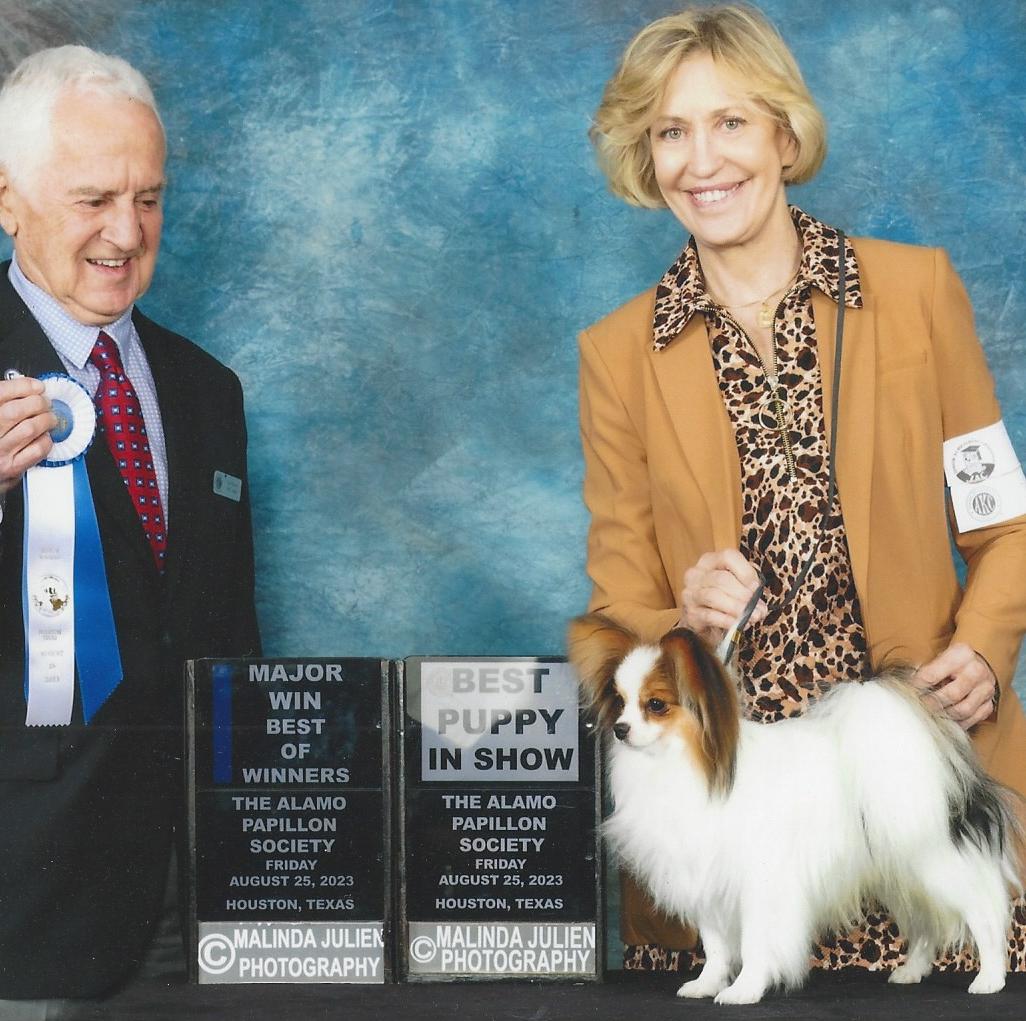 Elyse is a member of Houston Area Papillon Club, Toy Club of Greater Houston, Houston Kennel Club, and Papillon Club of America.