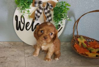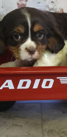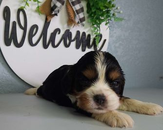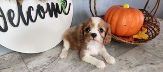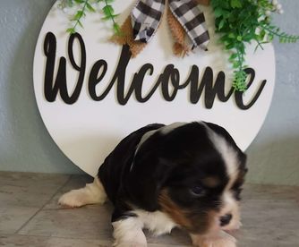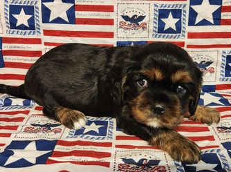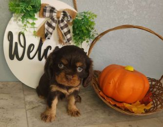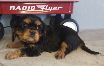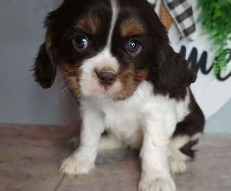 Our Cavalier King Charles Spaniel puppies include blenheim, ruby, black and tan, tri-color, and chocolate. Colors will vary depending on the parent dogs.