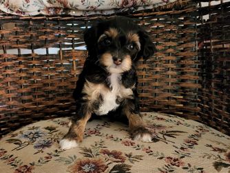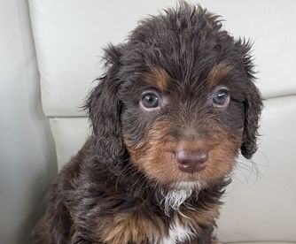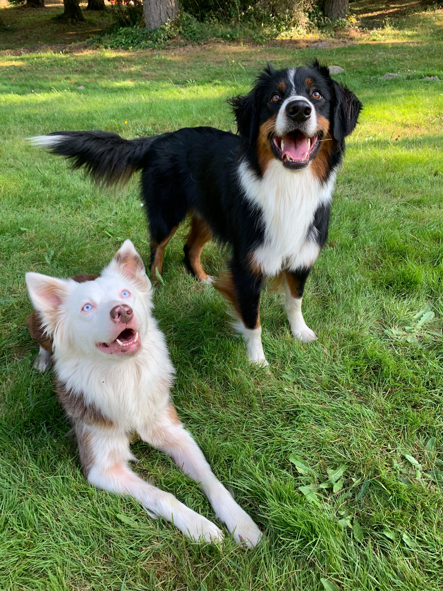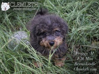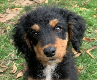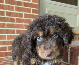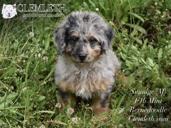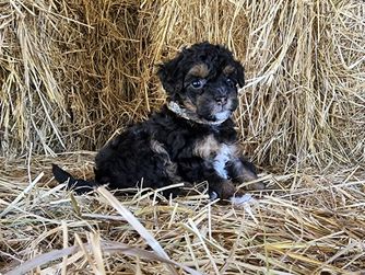 Our Aussiedoodle puppies include blue merle, red merle, black phantom, black tri-color, red phantom, and red tri-color. Bernedoodle puppies include tri-color, phantom, and merle. Colors will vary depending on the parent dogs.