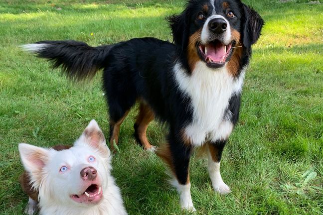Our Aussiedoodle puppies include mini and standard sizes. Bernedoodle puppies include mini and medium sizes. Sizes will vary depending on the parent dogs.