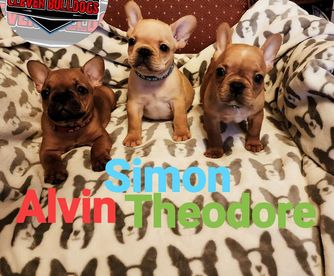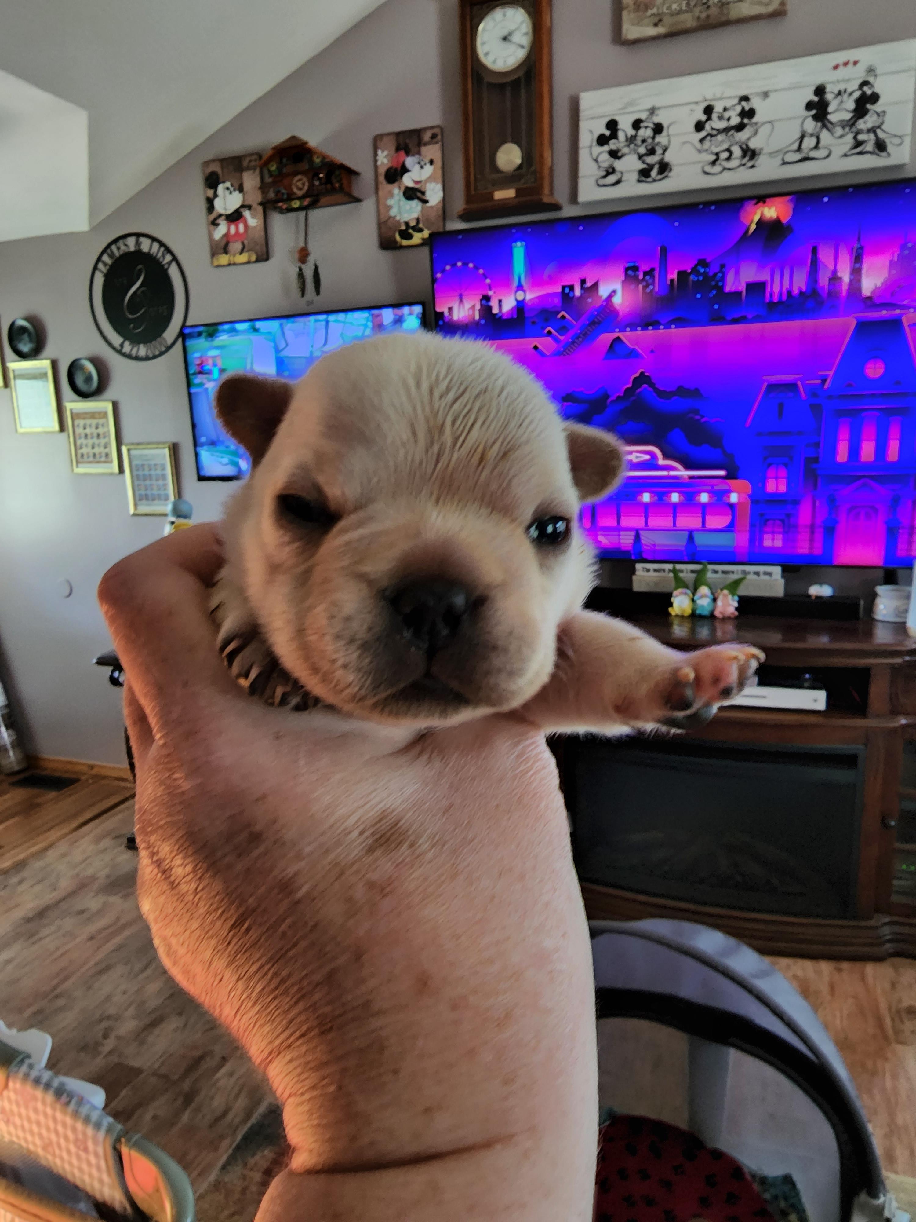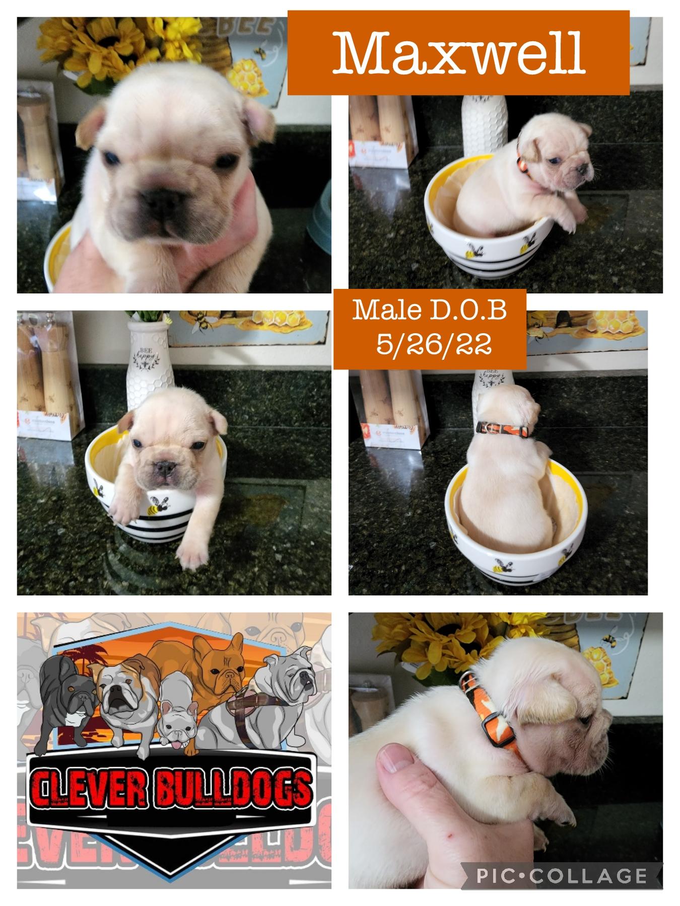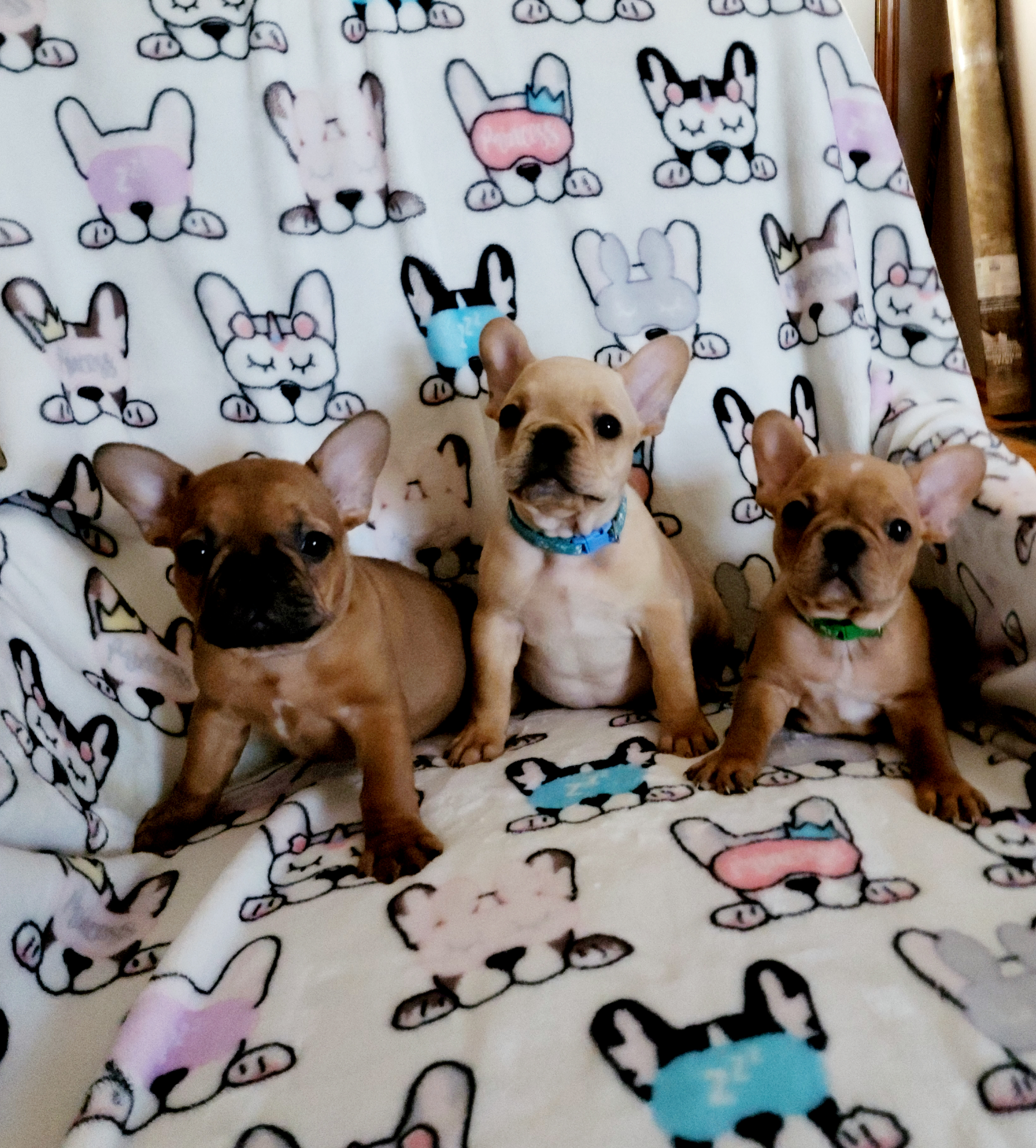 Our Bulldog puppies include red brindle and white and red and white. French Bulldog puppies include brindle, cream, and fawn. Colors will vary depending on the parent dogs.