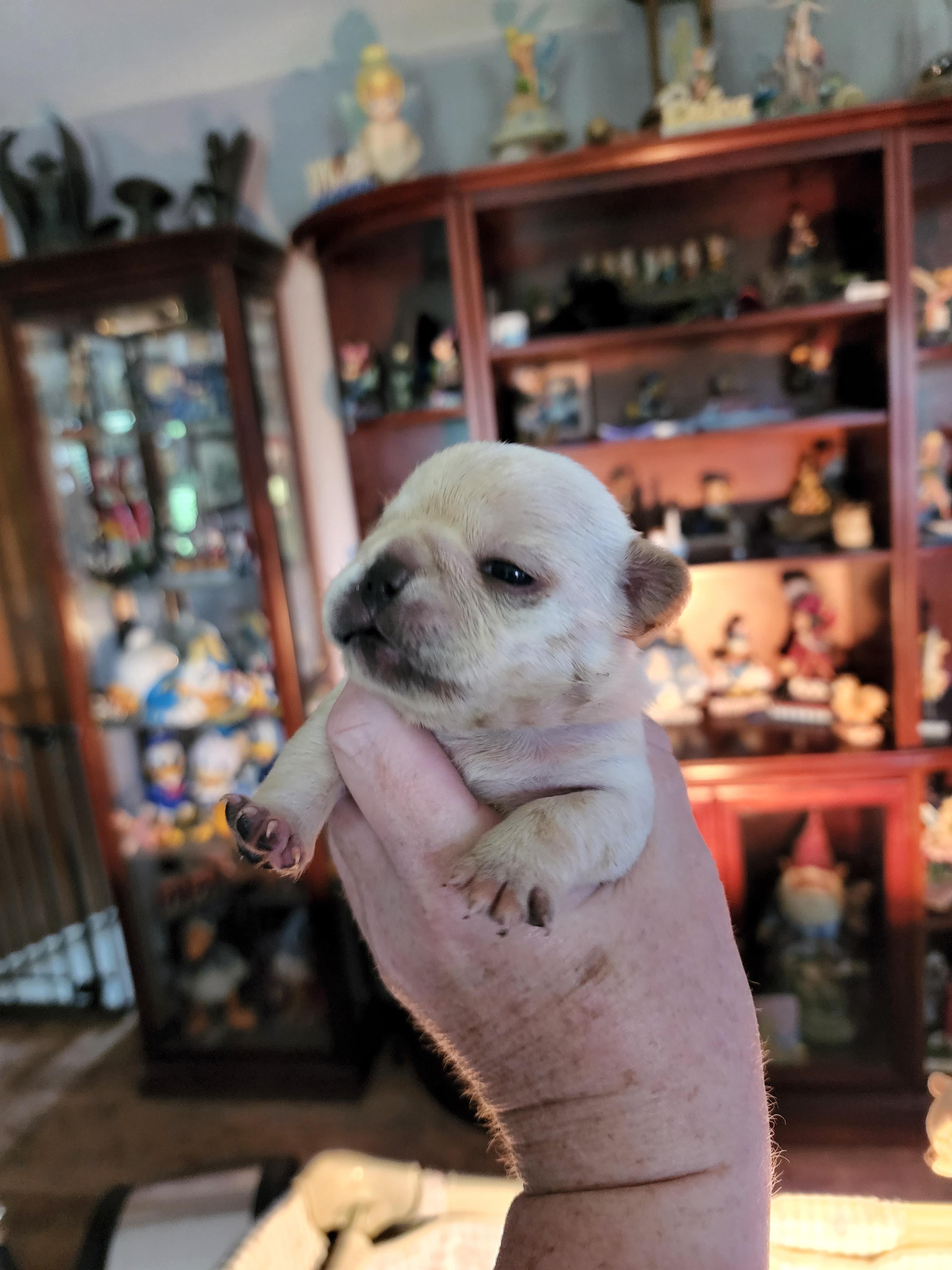 I am a stay at home doggy momma. I share my babies from ultrasound until they go home. Our breeding program is an open book. We are here even after the babies go home and have many repeat puppy parents. We litter train our puppies with equine bedding (pine pellets) and start potty training at 6 weeks. We try to post lots of pics of the and live videos so people feel part of our puppies lives