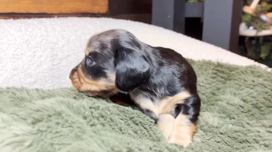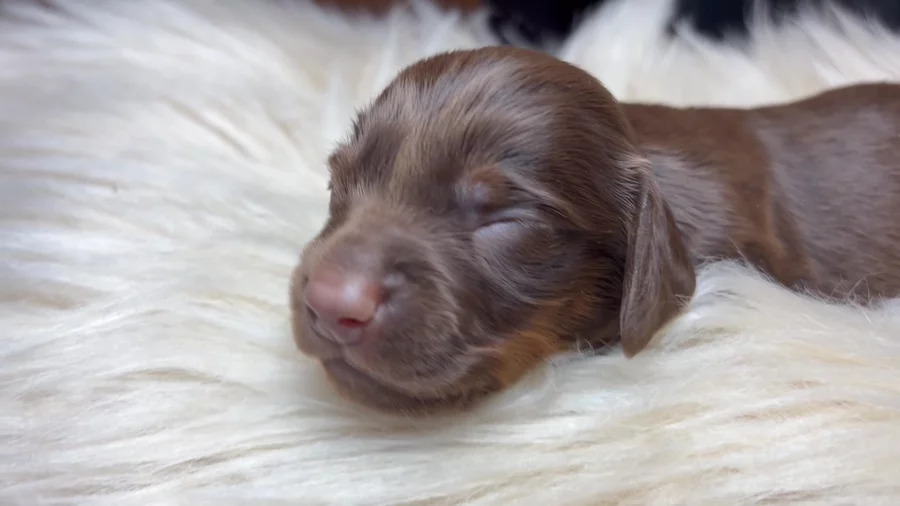 April was great through the whole process. We kept each other updated easily through messages. I didn’t think “buying a puppy off an app” would be so easy and seamless. April provided everything to get me started with a new puppy, including paperwork, records, and even some food, snacks, a toy and a blanket. I absolutely adore the miniature dachshund puppy I bought from April. He’s a super star puppy! I have had him about 6 days and it’s gone great. He’s super sweet and smart. He enjoys cuddles, zoomies, and chew toys. He gives adorable side eye. he’s even picked up on fetch and starter commands already. He’s incredibly smart. I highly recommend April and her mini dachshunds.