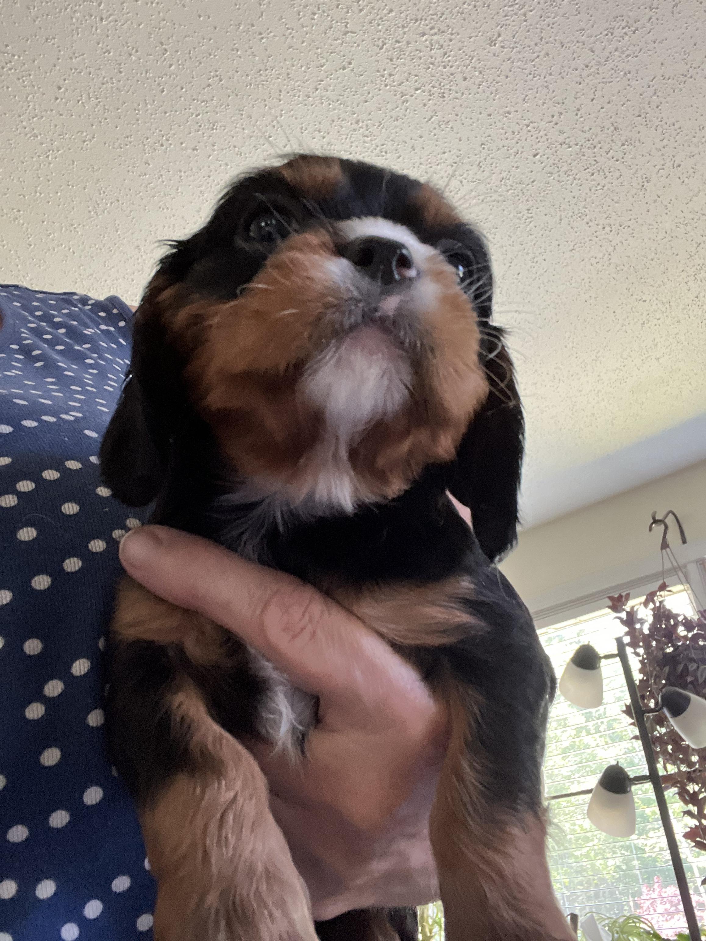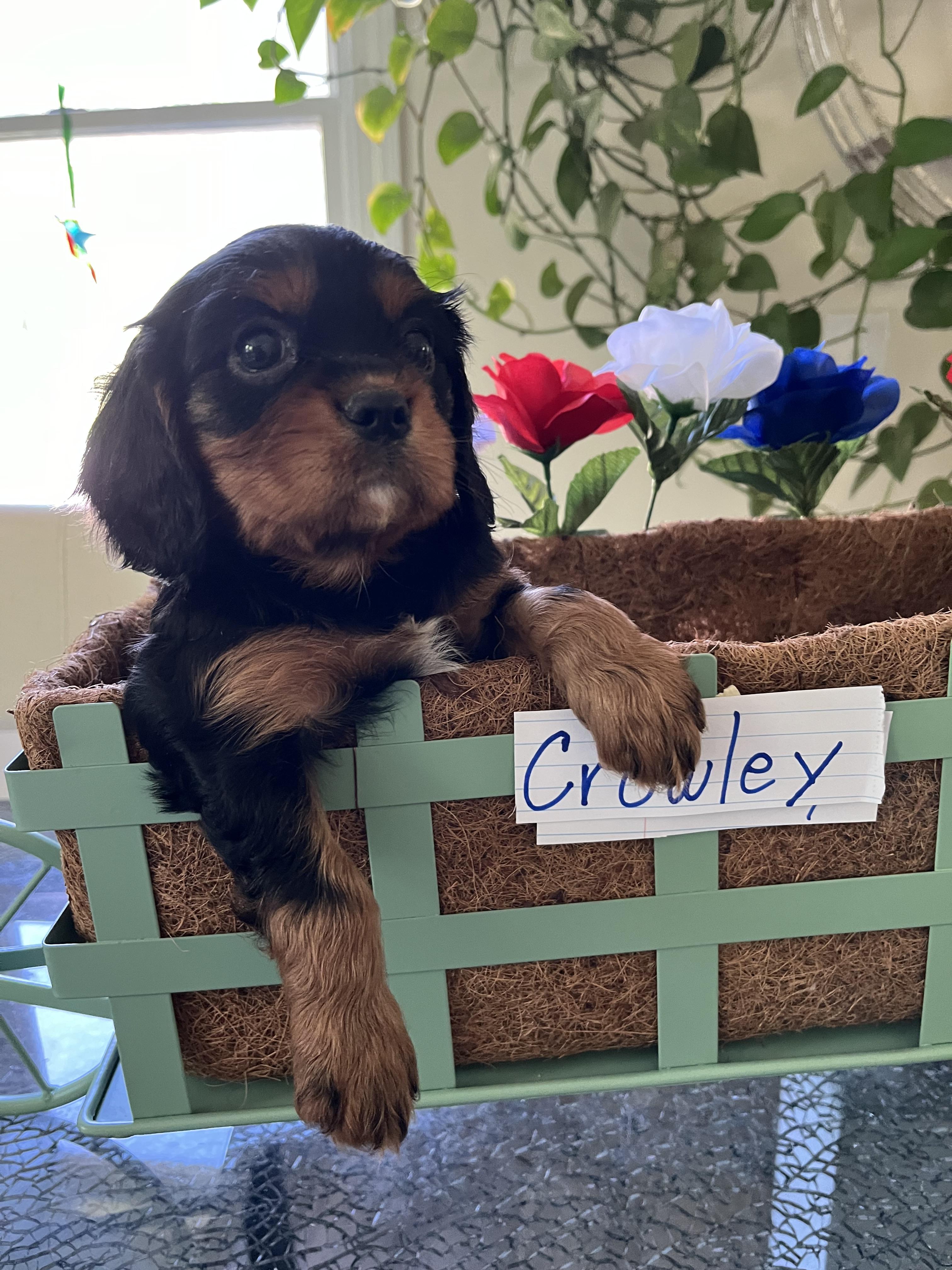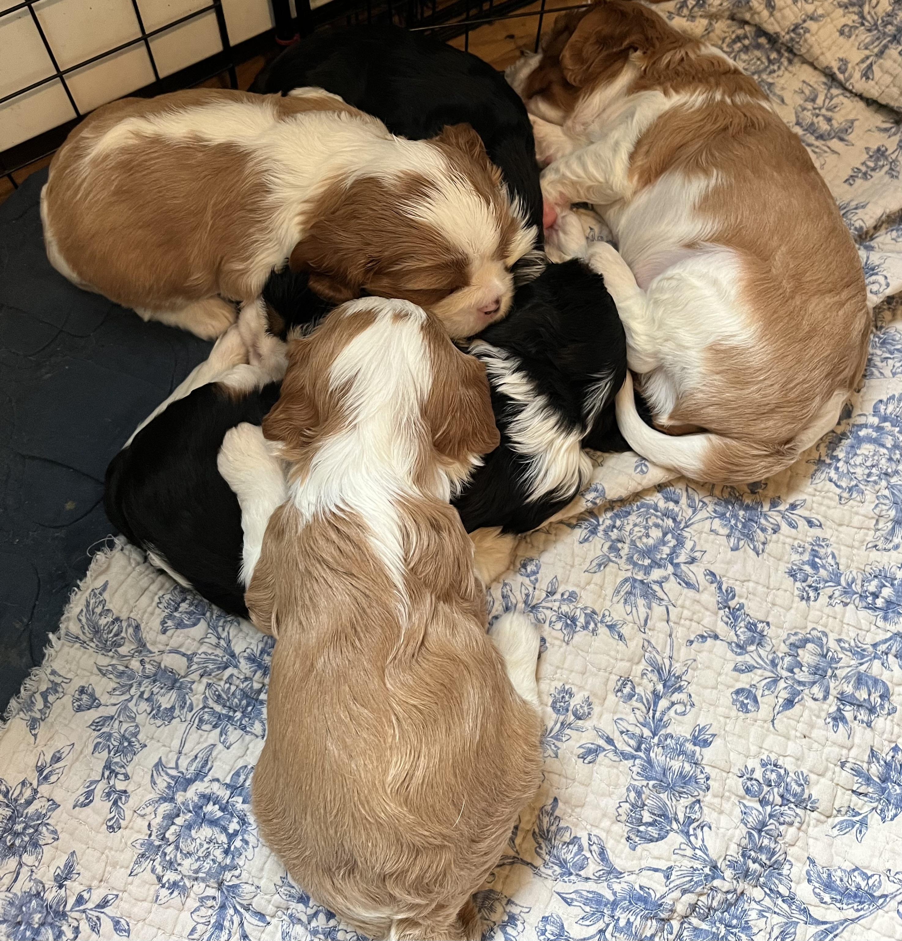 Our puppies include blenheim, ruby, tri-color, and black and tan. Colors will vary depending on the parent dogs.