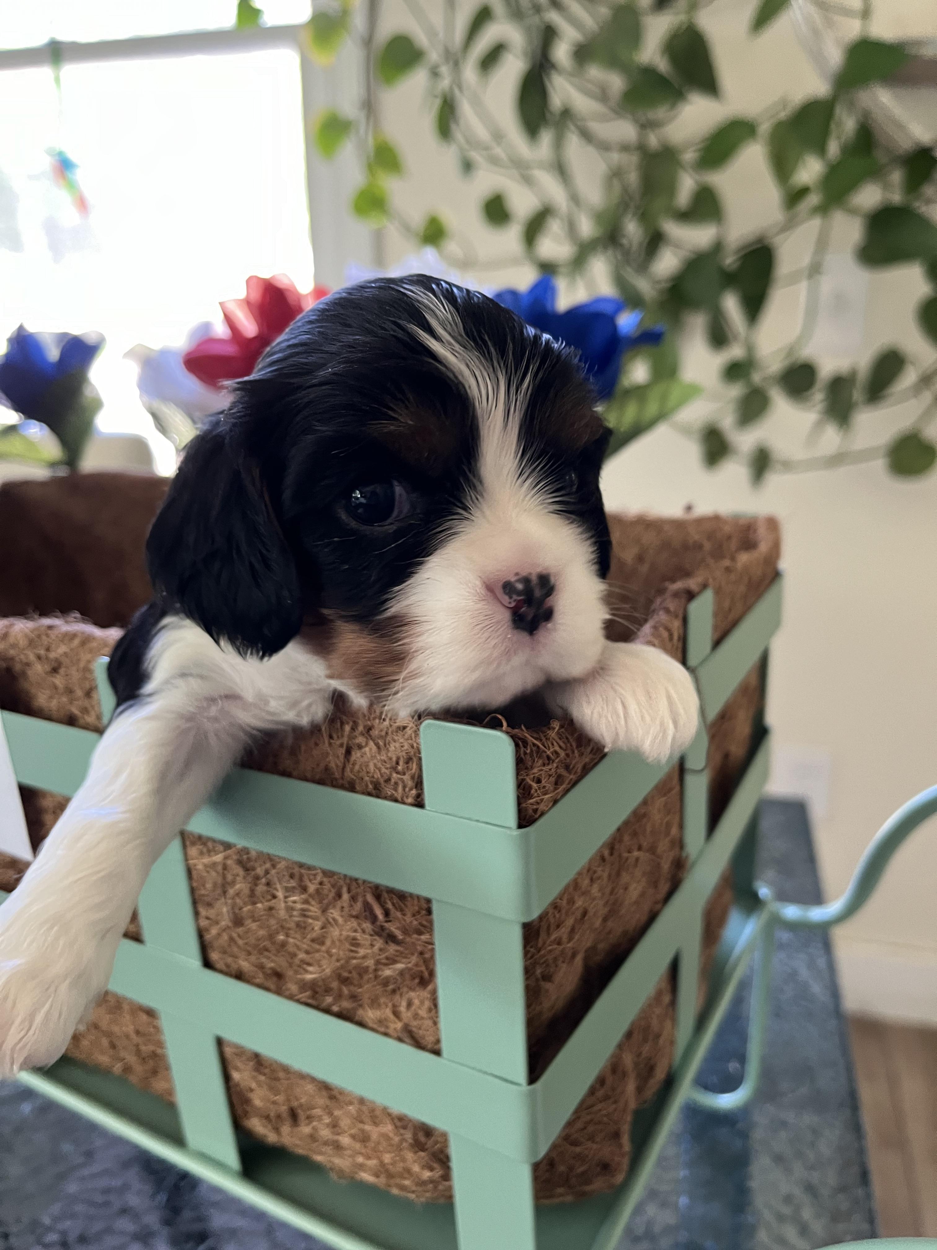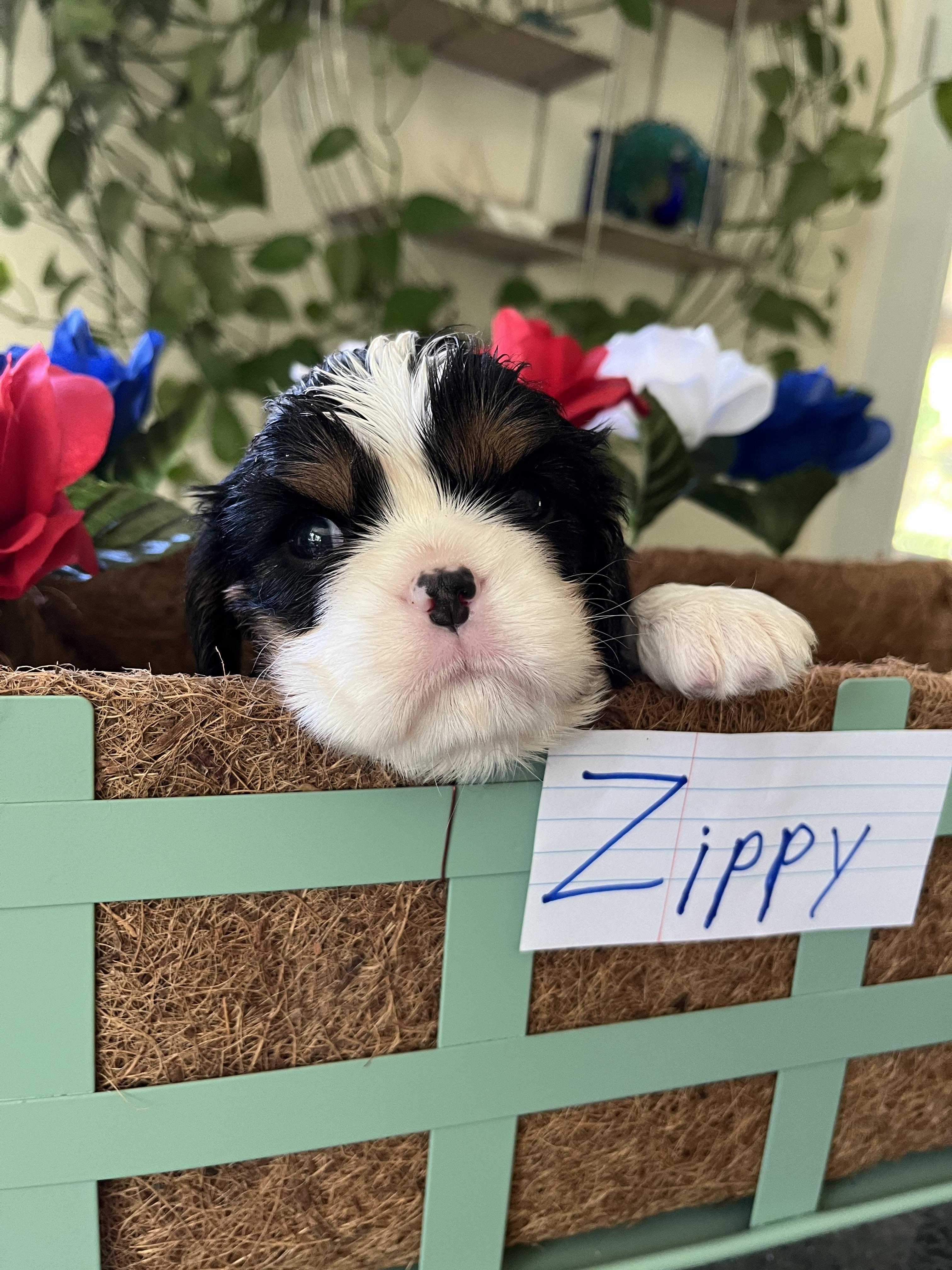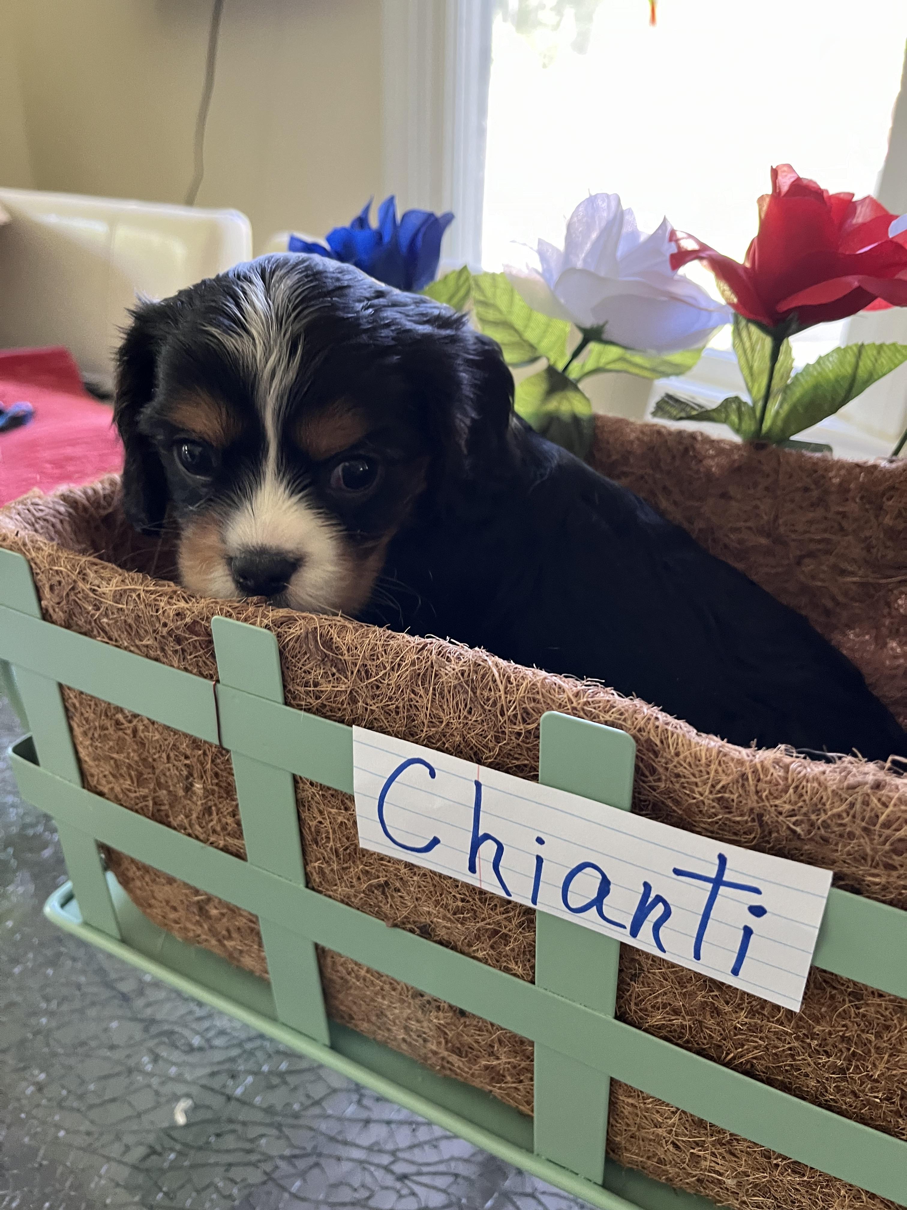 Our puppies include blenheim, ruby, tri-color, and black and tan. Colors will vary depending on the parent dogs.