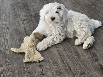 I'm Sally P., the breeder behind Cloud Nine Doodles located in Lynden, WA. At Cloud Nine Doodles, we believe the first eight weeks are crucial. We focus on health, nutrition, socialization, love, and a secure environment. Our puppies happiness is our top priority, and we provide top-notch customer care for our humans - making for a lifetime of happiness! It's who we are.