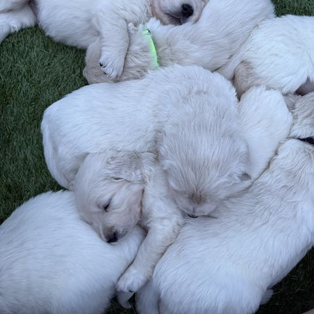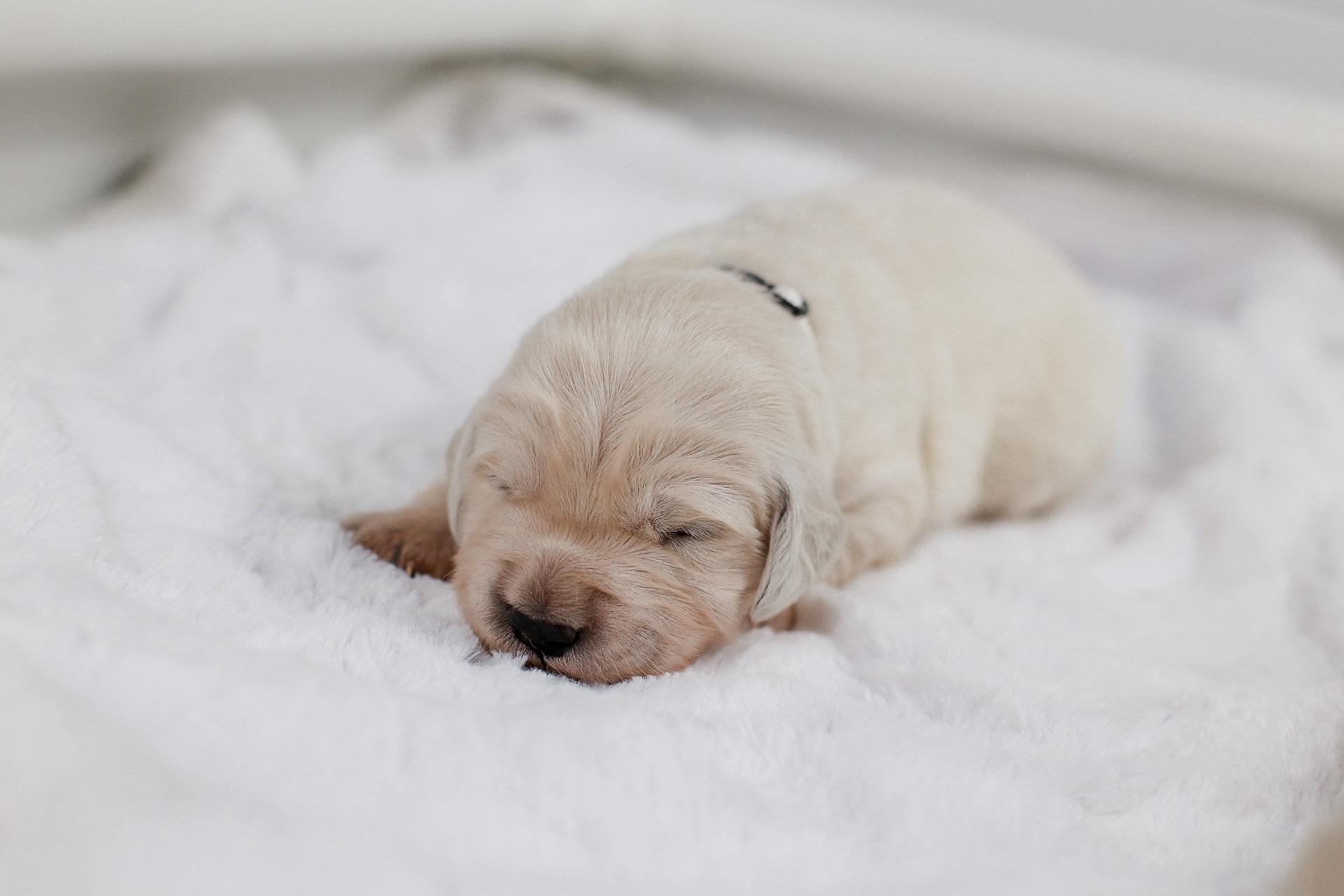Puppies are going outside in the play yard a few times a day now. Enjoying a nap in the evening here 🙂