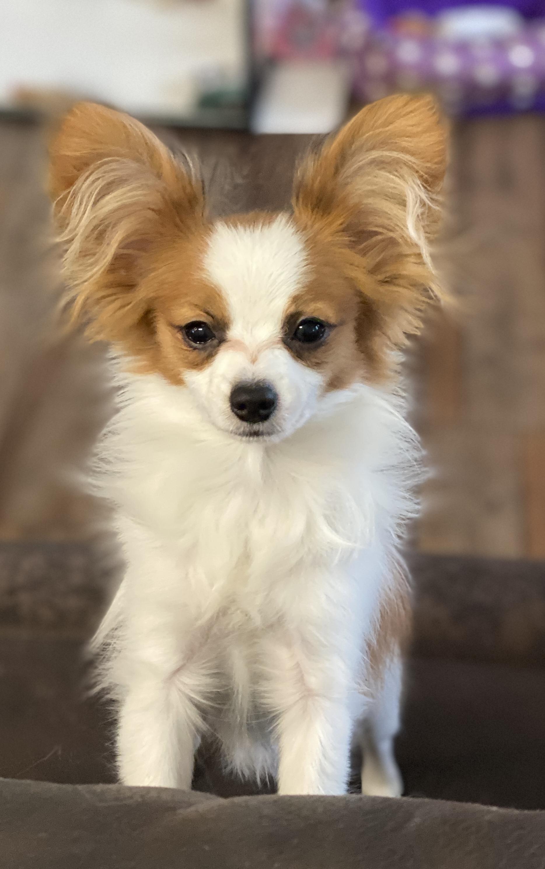 Indy is a female Papillon. Carefully selected as a great representative of her breed, Melanie decided to make her part of their program. Melanie has passed Good Dog’s screening process, which involved a review of their breeding practices, environment, and the mental and physical health of their dogs.