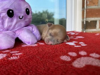 Our Chihuahua puppies include smooth and long coat varieties. Coat types may vary depending on the parent dogs.