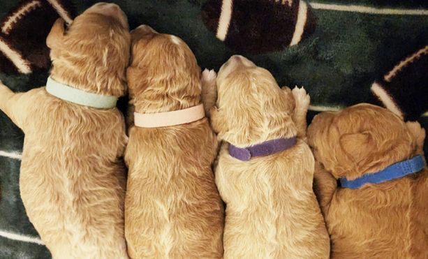 Our Goldendoodle puppies are miniature size. Aussiedoodle puppies include toy and mini sizes. Miniature Australian Shepherd puppies are miniature size. Sizes will vary depending on the parent dogs.