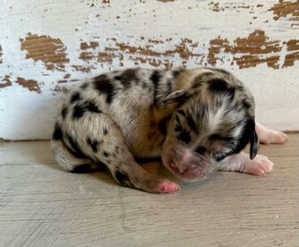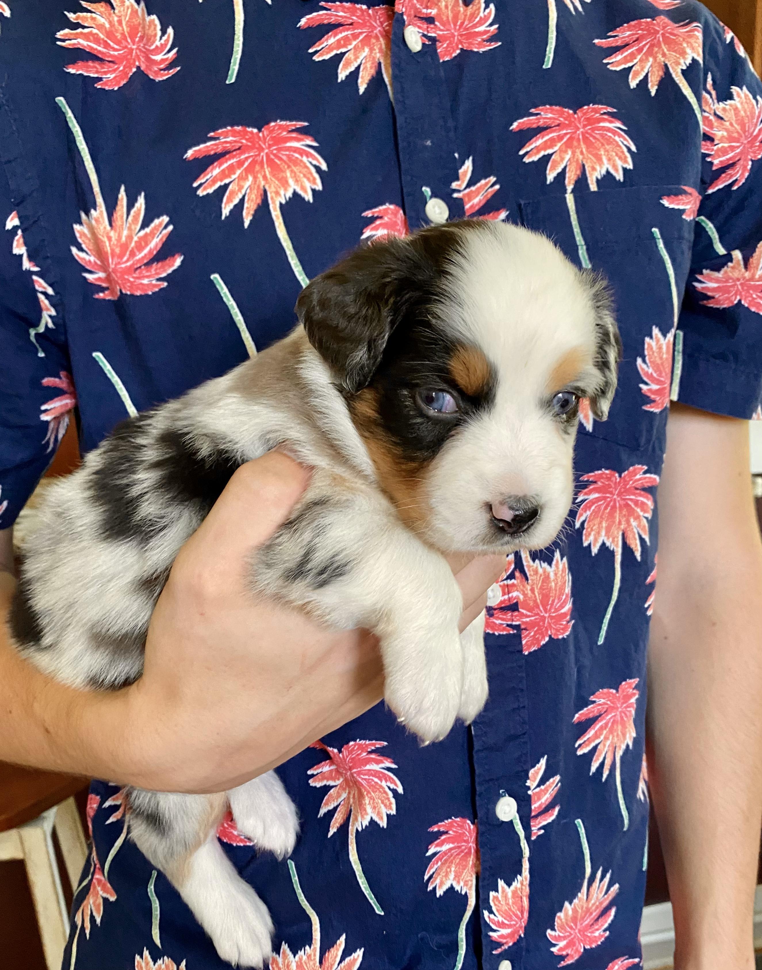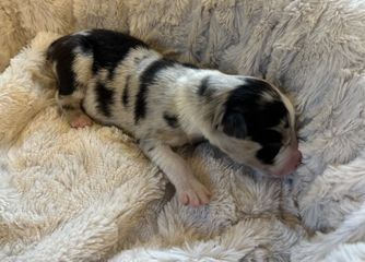 Our puppies include black, red merle, blue merle, and red. Colors will vary depending on the parent dogs.