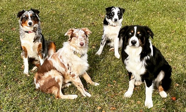 Clover Bell Farm is a small, very select breeding program. Our Aussies are the heart of our family and farm life. Our puppies are whelped and raised in our living room and are part of our everyday life. Puppies do everything our big dogs do. We will include you with constant updates, photos, and puppy milestones. We also encourage a puppy visit after three weeks of age.