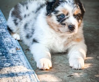 Our puppies include red merle, blue merle, black tri-color, and red tri-color. Colors will vary depending on the parent dogs.