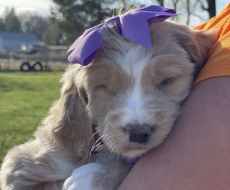 I'm Crystal R., the breeder behind Cloverdale Doodles LLC. located in Kuna, ID. All of our puppies are bred, raised, and loved indoors to produce happy, healthy pets for those seeking the best family companion! We are dedicated to always providing our buyers and our puppies with a positive experience, which includes remaining committed to responsible practices when it comes to breeding, training, and rehoming our puppies.